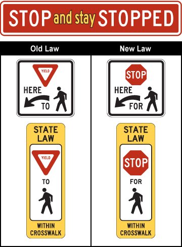 STOP FOR PEDESTRIANS IN THE CROSSWALKS!